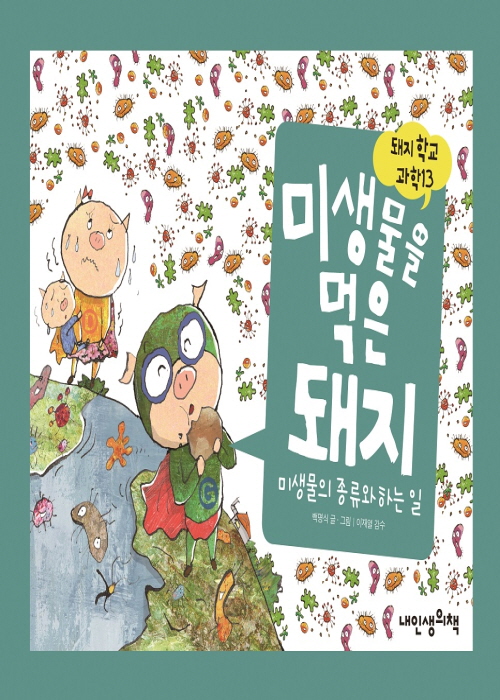 돼지 삼총사가 쉽고 재미있게 전하는 과학 시리즈 「돼지학교 과학」 제13권 『미생물을 먹은 돼지』. 인체에 살고 있는 미생물, 주변 환경에서 관찰할 수 있는 미생물, 인류를 변화 ..